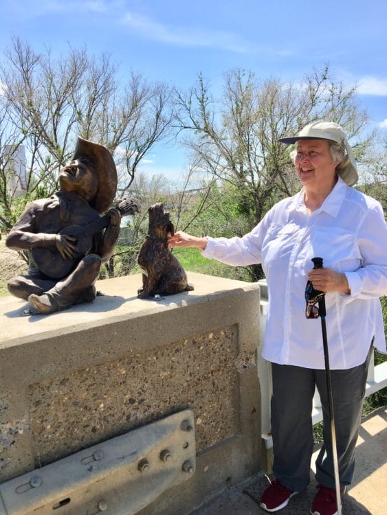 Pamela’s Towne Street bridge sculptures – one on each corner post – delight everyone who drives or walks across the bridge!