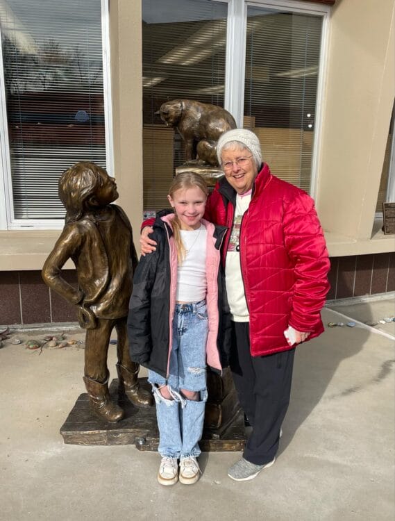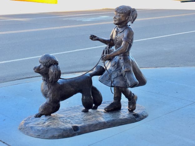 On November 23rd, 2021 Pamela installed two more charming sculptures in Glendive. “It’s Going to be a Rodeo!” is a two piece set that tells the story of a prim girl and her well-groomed Poodle about to meet up with a little cowboy and his rambunctious dog. We value humor in eastern Montana and Pamela understands that.